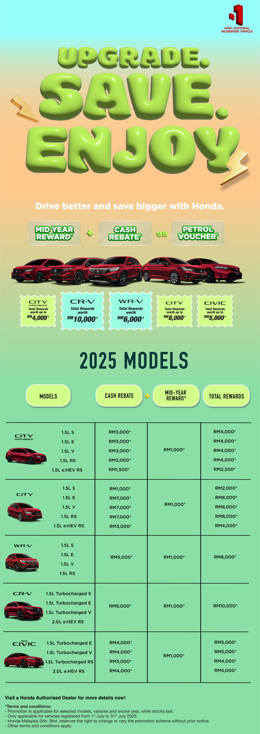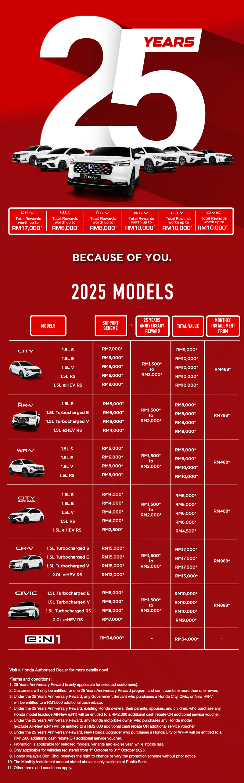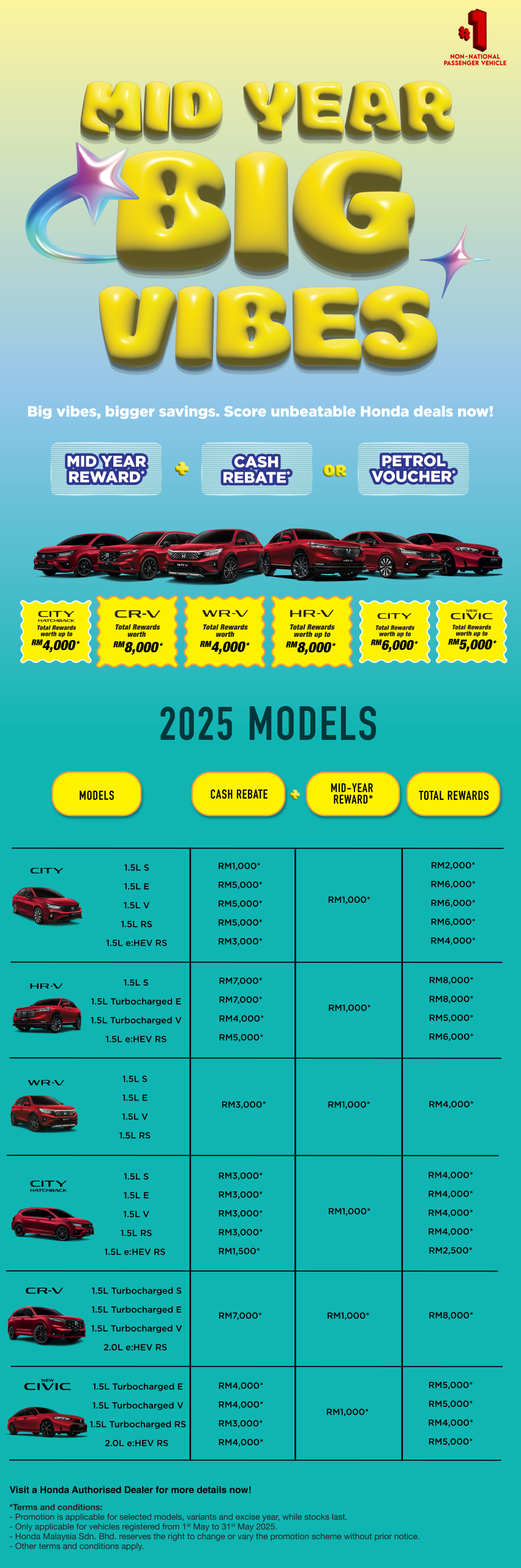 Enjoy a total rewards of up to RM15,000! For more information, contact SA Stella Lee at Honda Kepong. Just click the WhatsApp button below — we’re happy to assist you!